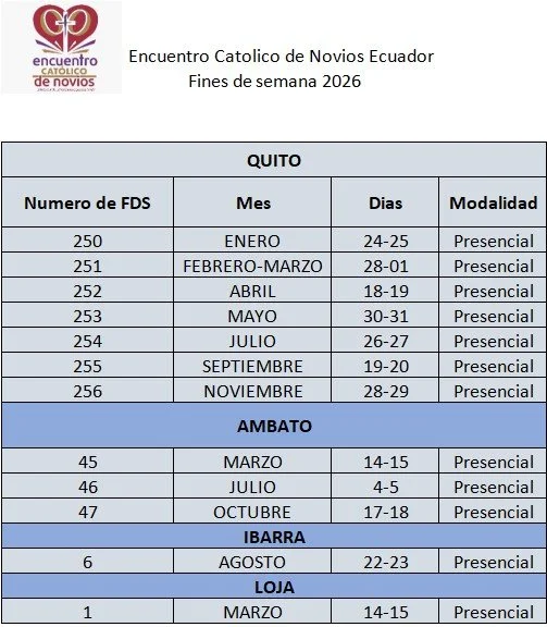 Les invitamos a que vivan la experiencia en el ENCUENTRO CATÓLICO DE NOVIOS ECUADOR.